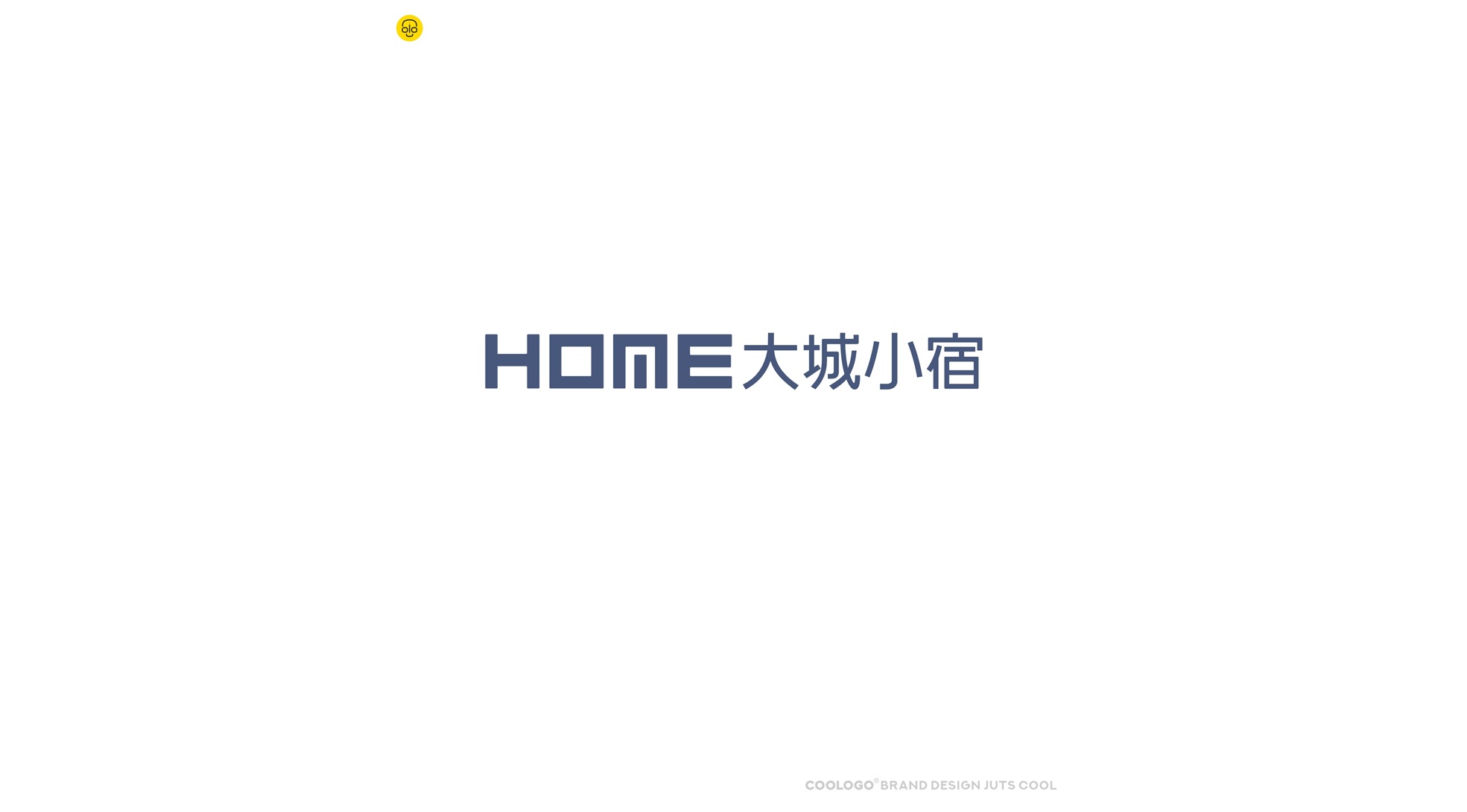 乙方儿子答:HOME英文体现了家的意思,但是直接用HOME英文,而没有一点设计,又会显得我们没动脑子,所以最终我决定用M做做文章,大家也看出来了,有点像小米图形,不过我有自己的解释,我觉得这个M的中间一笔像一个小家门,而外面这个是一个大城门,我一直坚信冥冥中有些东西是注定的,这个小家门大城门的图形诠释刚好与大城小宿达到共通。另外,我将四个字母设计成同样的方形尺寸,这样就让这个英文可以随意组合使用,同时也能体现大城小宿品牌服务充满变化。